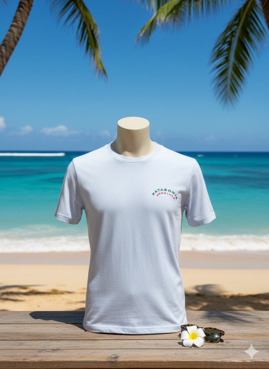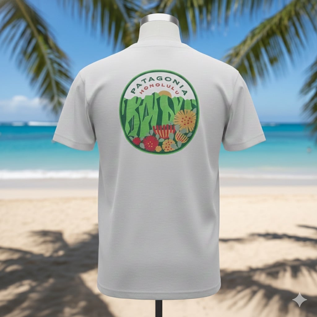 胸元には「PATAGONIA HONOLULU」のアーチロゴ